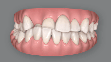 こうして順繰りに奥へと歯を移動させることで、前歯をきれいに並べるスペースを確保できるというのがインビザラインの優れたポイント。