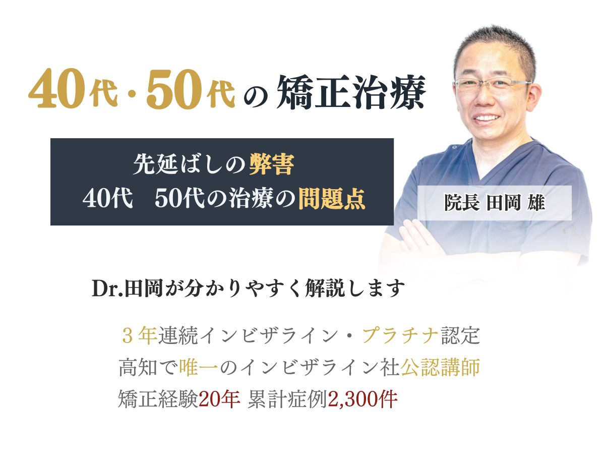 こちらでは、40代・50代で矯正治療をお考えの方に、知っておいていただきたいことをまとめました。ぜひご一読ください。